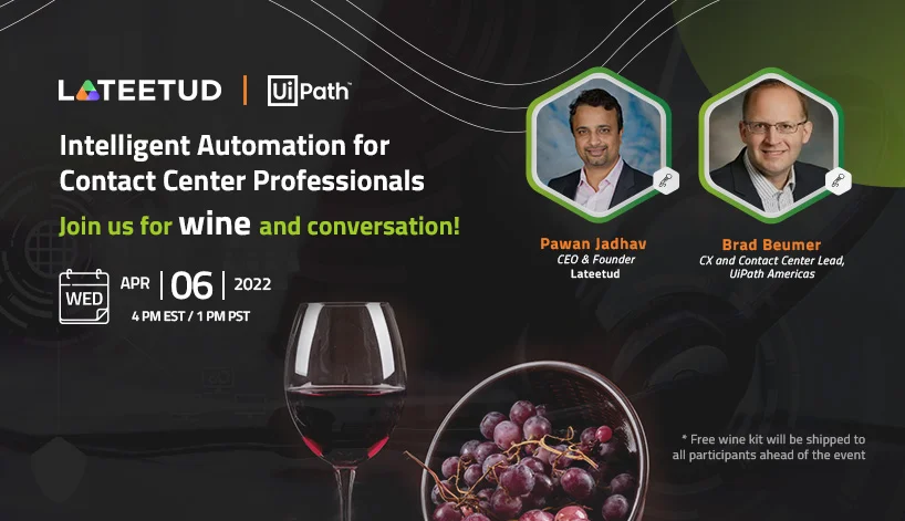 Lateetud and UiPath come together for a webinar with a twist. Join us as Pawan Jadhav, CEO, Lateetud and Brad Beumer, Contact Center Automation Lead,...