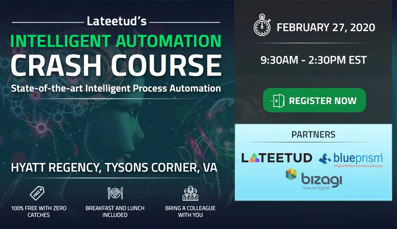 Lateetud’s Intelligent Automation (IA) Crash Course is an interactive, can’t-miss event that will show you how to create a successful IA program.