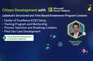 Lateetud invites you to attend our webinar where Pawan Jadhav, CEO of Lateetud, will discuss how to setup Centre of Excellence for Microsoft Power Platform to enable Citizen Development.